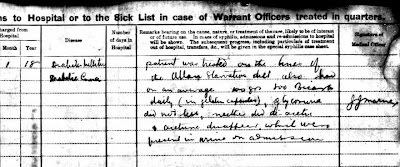 Two weeks before this date, the unit had been in training on Salisbury Plain at Fargo Camp. This was one of three tented camps that had been established in the Larkhill area a few years before the First World War. Looking at pictures of recruit training there from other units, I can see where a few of the group pictures that I have were taken. The rows of bell tents are unmistakeable. In good weather, it must have been quite enjoyable to end the evening sharing good times with your "mates" outside your tent. Not so much fun in the wet! Canvas is notorious for taking a long time to dry off!